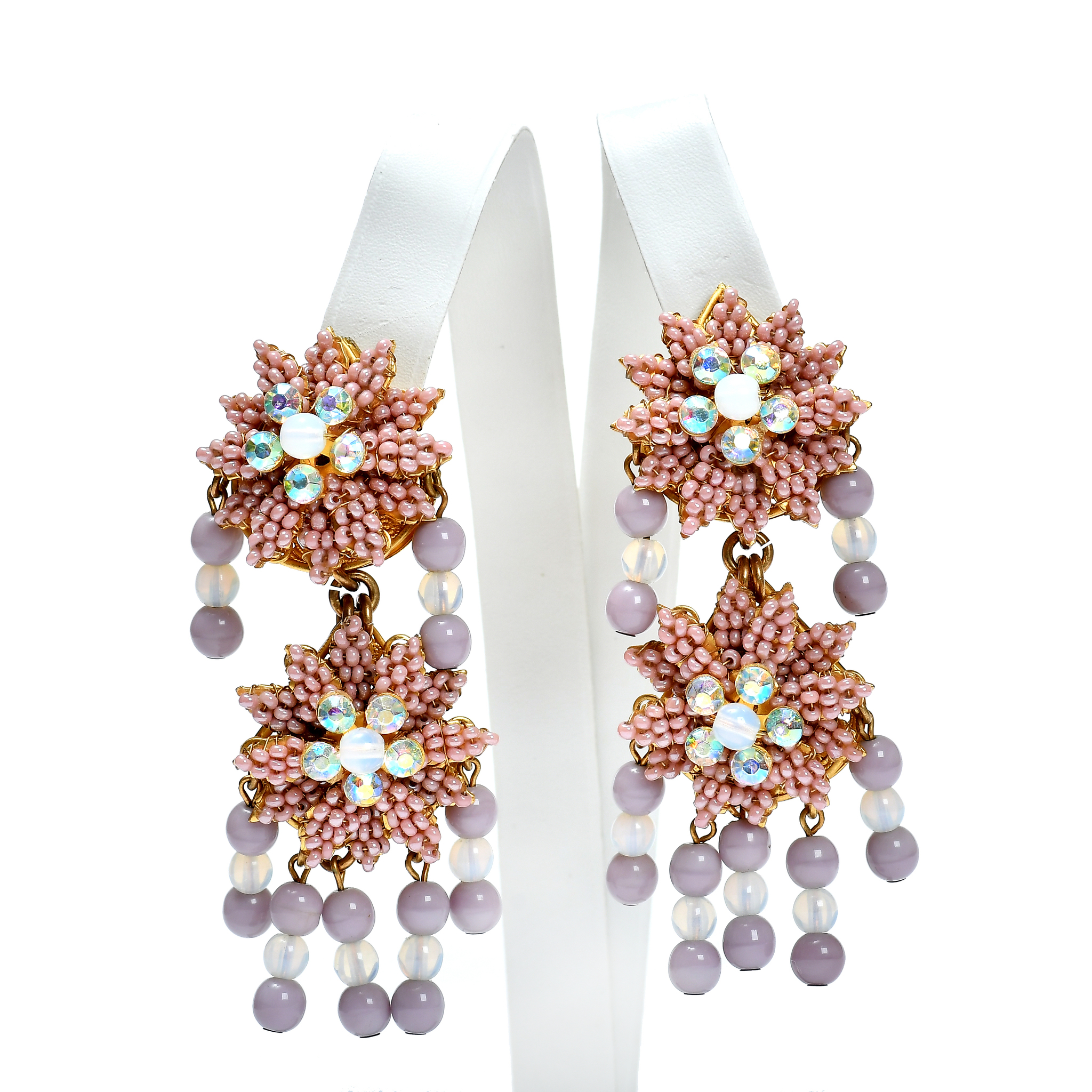 Удивительные нежные клипсы от метра американской бижутерии. В них явно чувствуется влияние Мириам Хаскелл эти цветы как будто расцвели в волосах у девушки, словно их создала сама природа! Клипсы можно приобрести в комплекте с колье.