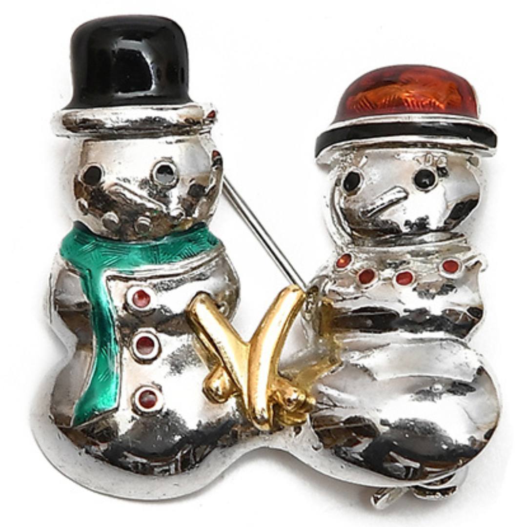 Очаровательная, игривая и символичная брошь в виде двух снеговиков от Lis Claiborne. Изделие выполнено из металла цвета серебра и украшено кристаллами цвета рубина и эмалью. Два снеговика как будто ждут новый год, держась за руки. Эта брошь — беспроигрышный, стильный, экологичный подарок на Новый год.