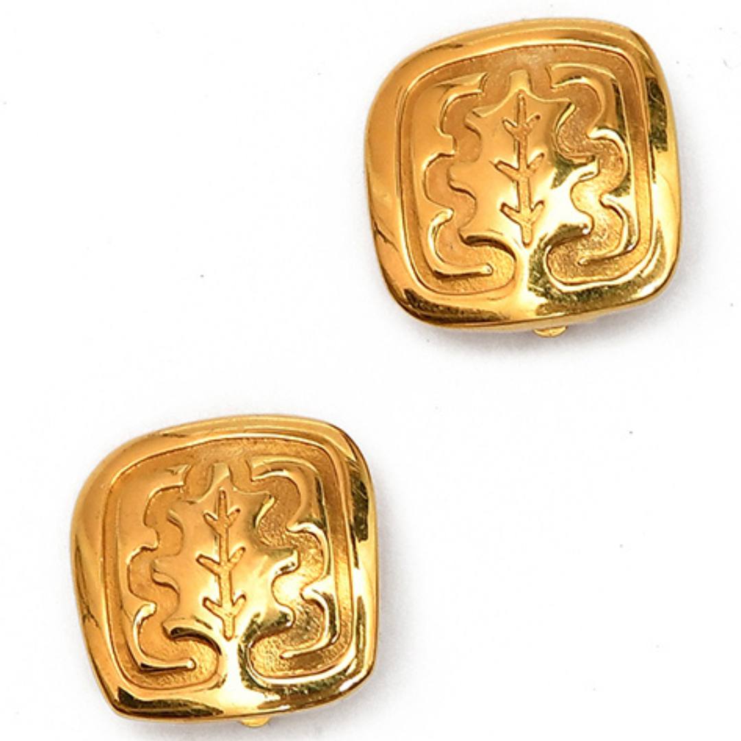 Лаконичные клипсы от иконы французского стиля Ines de la Fressange. Клипсы воплощают в себе роскошь, элегантность и непринужденный шик, которые отражает фраза  «шик без усилий. Украшение выполнено в виде лаконичной квадратной металлической основы с выгравированными на ней изображениями дубов. Они как будто вдохновлены самой природой.