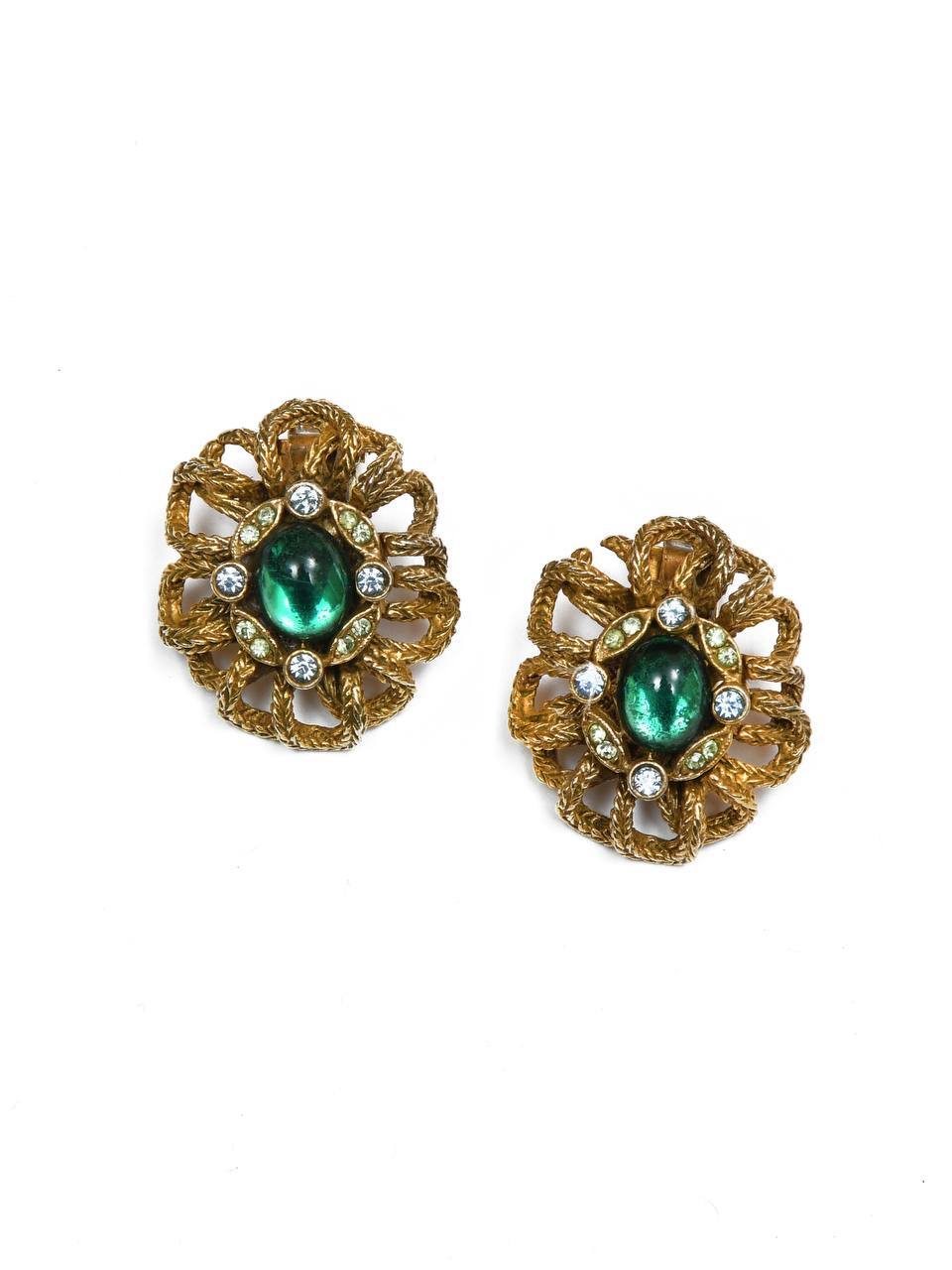 Клипсы в викторианской стиле с изумрудным кабошоном Capri