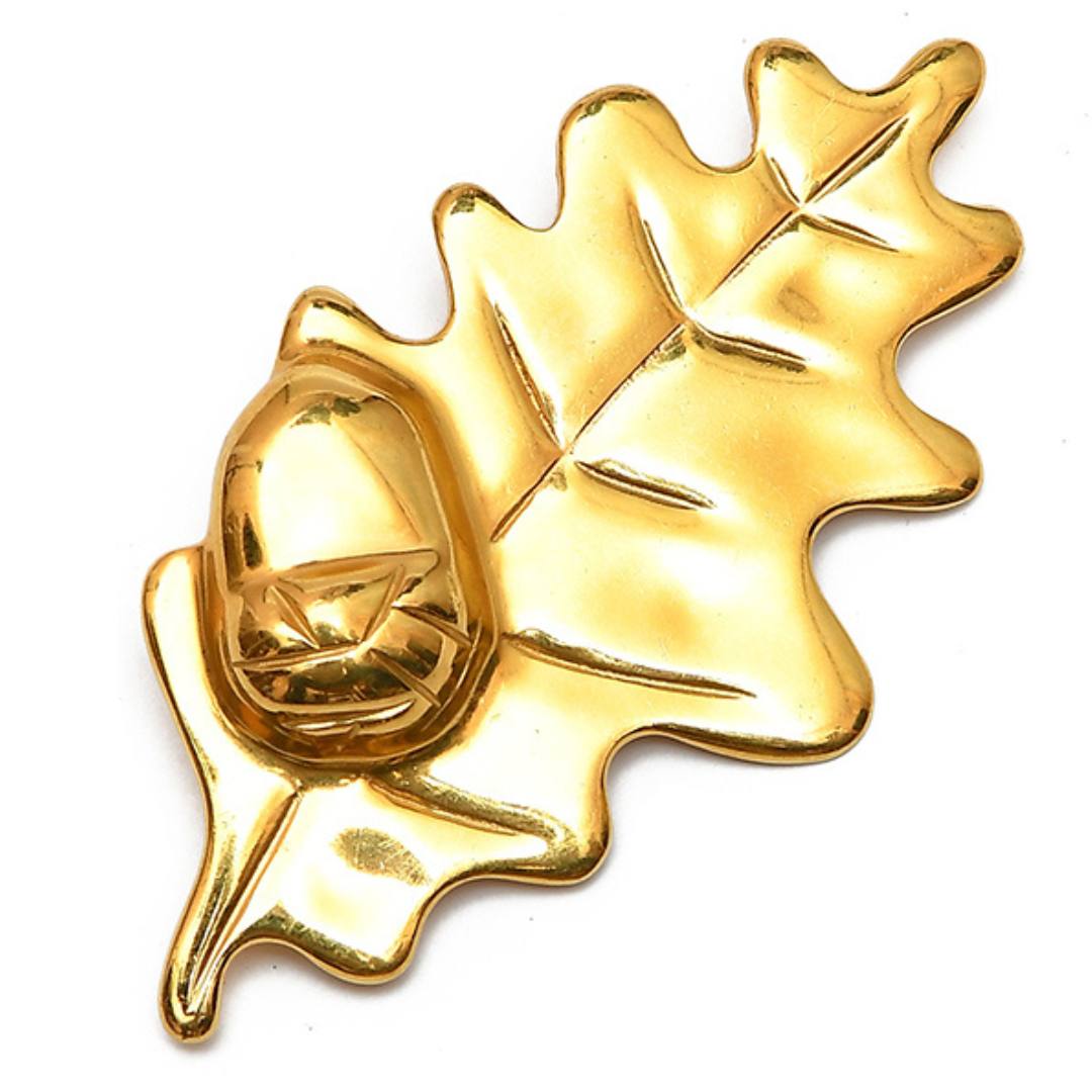 Инес де ла Фрессанж — икона и символ парижского стиля, французской моды и одна из самых известных женщин Франции. Бренд Инес де ла Фрессанж воплощает в себе роскошь, элегантность и непринужденный шик, которые отражает фраза «шик без усилий». Брошь выполнена из металла золотого цвета. Объёмный и оригинальный дизайн изделия влюбляет с первого взгляда: на дубовом листа расположился небольшой жёлудь. Украшение прекрасно будет смотреться на лацкане пиджака или пальто.